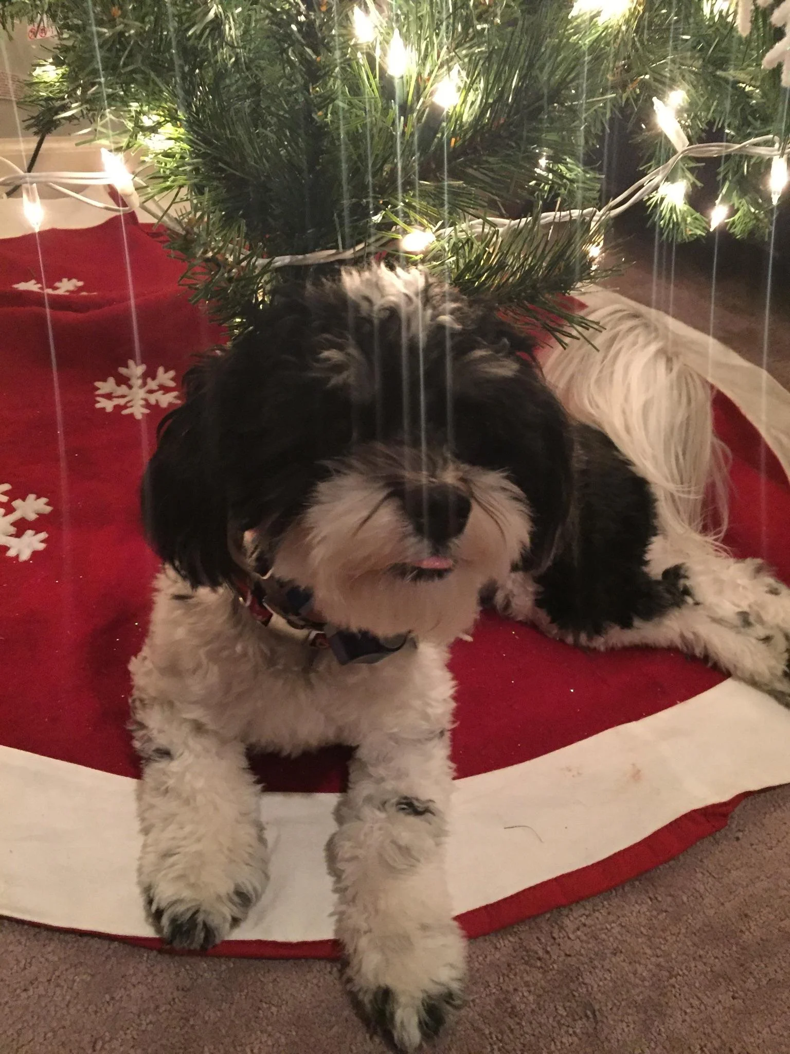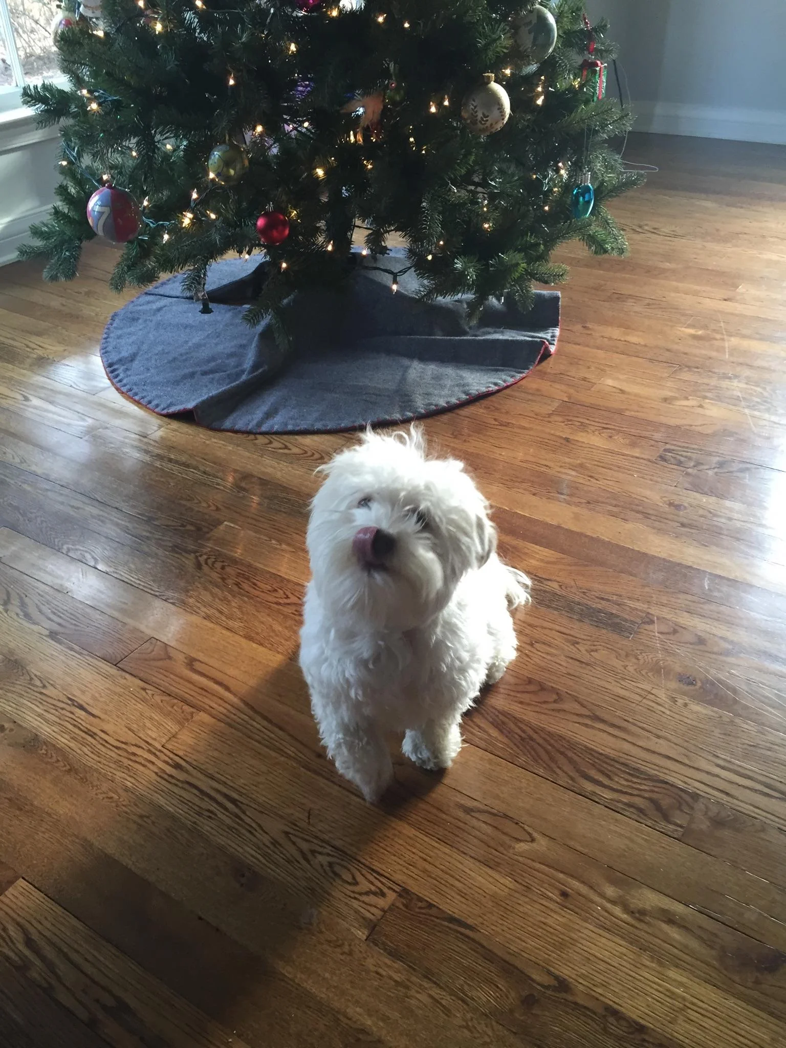 Milo sticking his tongue to say what he thinks of Christmas photos.
