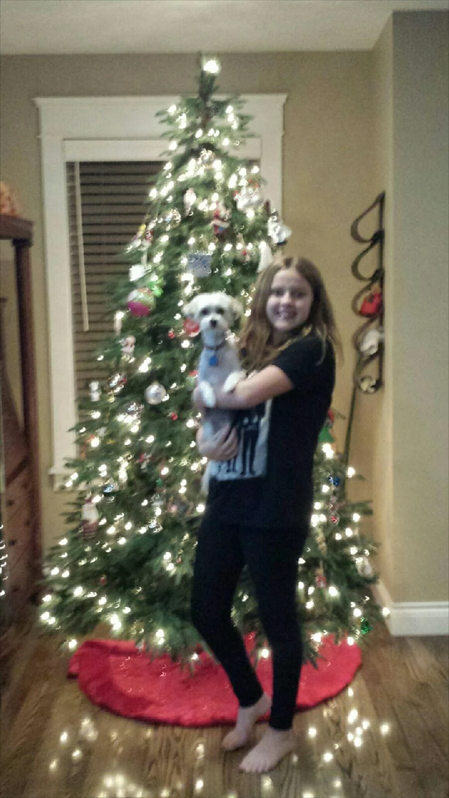 Marti posing in front of the tree.