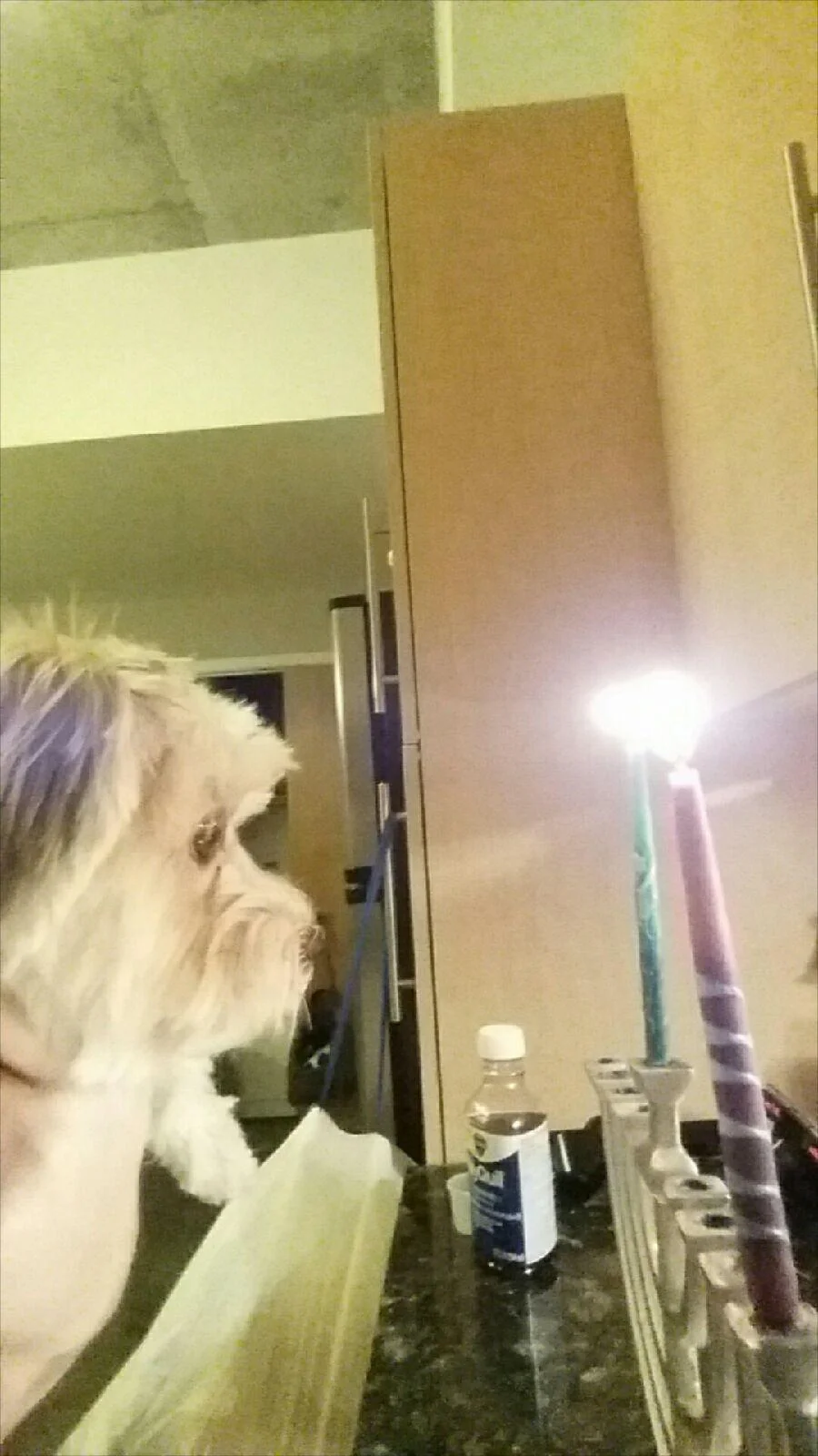 Milo celebrates Hanukkah. He especially loves the candles.