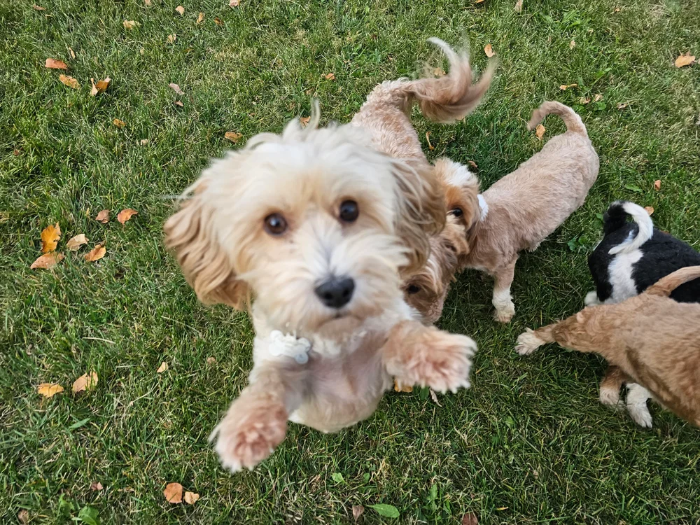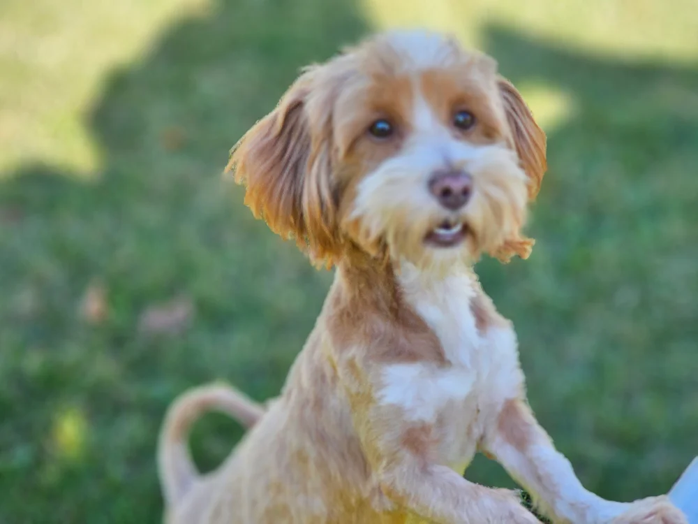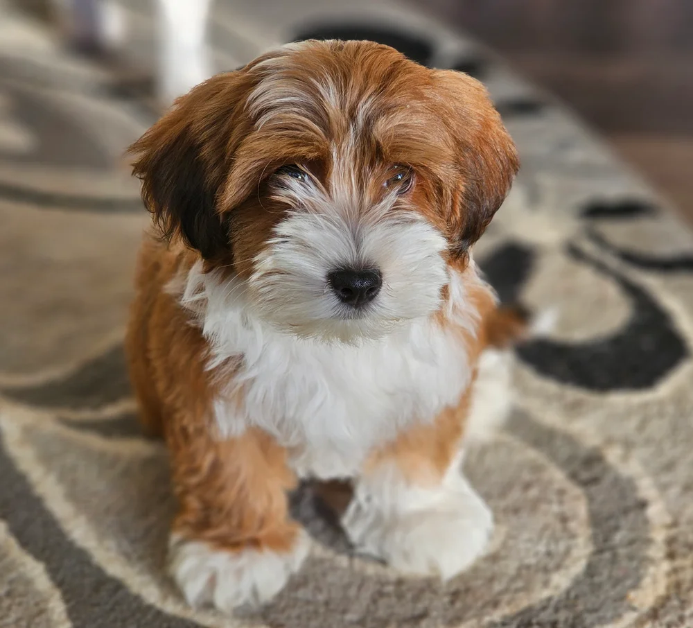 As beautiful as can be! Aries is a red and white Irish Pied Havanese. Her parents are our very own Heavenly Reed and Heavenly Andie! Aries weighs about 11 lbs. She is such a smart girl who enjoys running and playing with all the puppies. She is great with every dog! She currently has her first litter now(2024) and is enjoying raising her puppies and teaching them ‘all the things’.