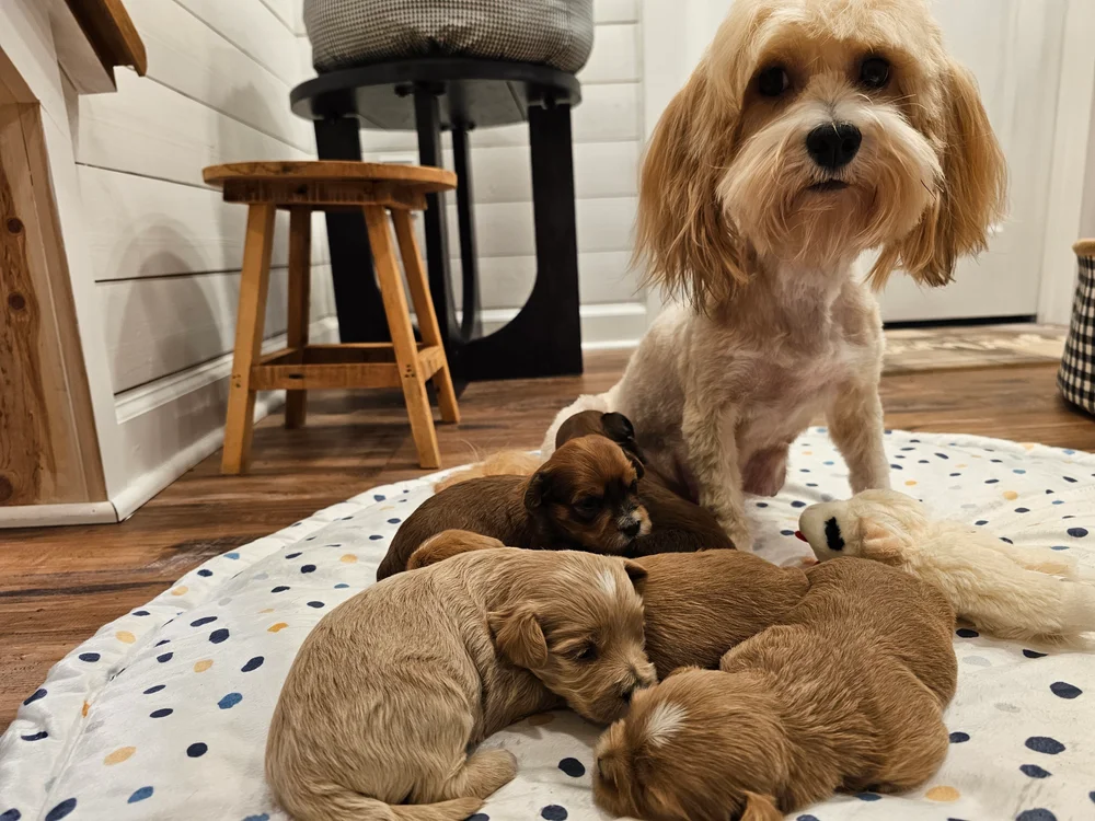 She is just the most loving and sweetest girl! Carly comes from our longest line of Heavenly Havanese lineage… all the way back to Lucy and Eddy! She has every good characteristic that a Havanese should have and is beautiful to boot! Carly is a gold Heavenly Havanese with an excellent coat who weighs about 9 lbs. She is a smart girl who enjoys being a great mom! She is affectionate, observant and watchful as she raises her puppies to be the best of the best!!! We hope to add one of her puppies to our breeding program in the future. Watch along with us as we plan out our puppies from Carly and Oscar or even Rigatoni down the road!
