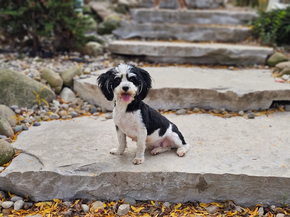 This girl is as sweet as they come! She has lots of great energy and is the best mom! She truly enjoys raising her puppies and loves to teach them all about being a good dog! Betty loves my attention and always waits for a good petting before going outside to play! She loves to cuddle and curl up with us on the couch. She is a confident dog who enjoys meeting people. She weighs about 10 lbs. Her stunning coat of hair is Jet Black and White White and her colors have not faded or silvered at all. She is an excellent dog here Heavenly Havanese and we look forward to her planned future litters with us here!