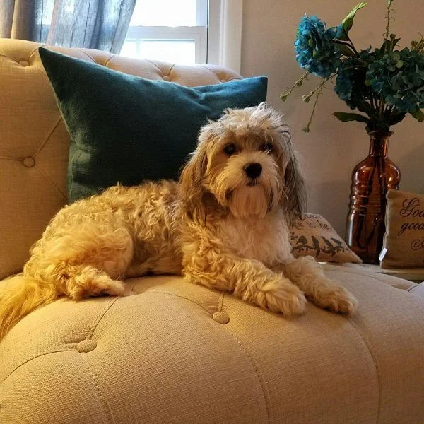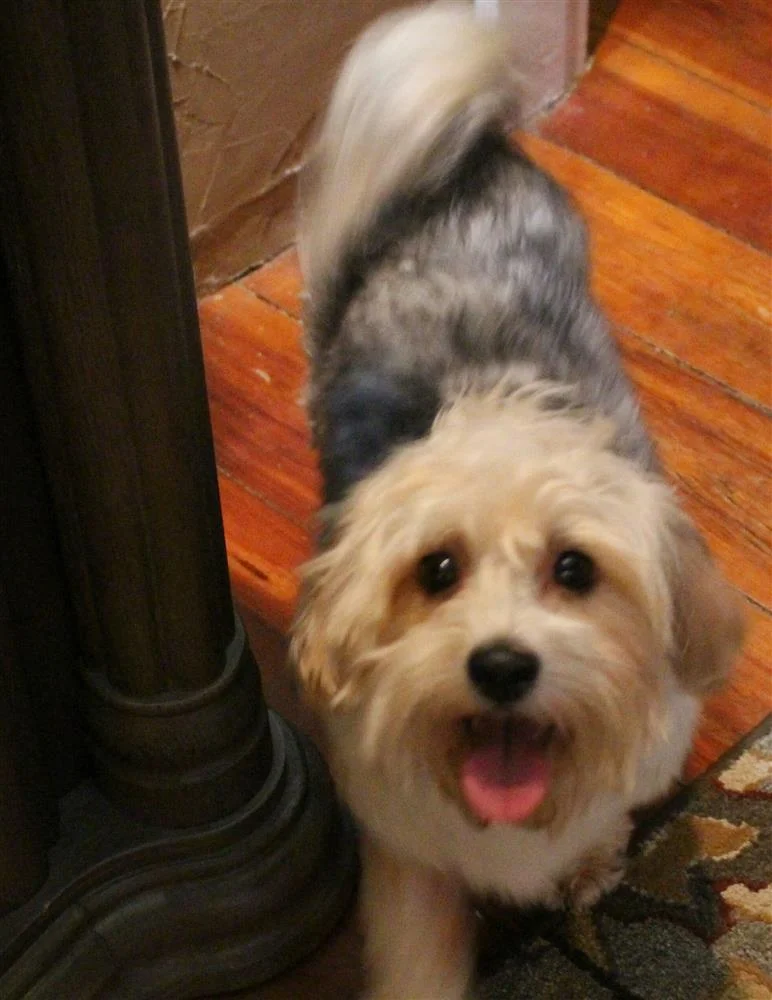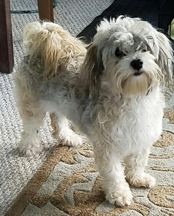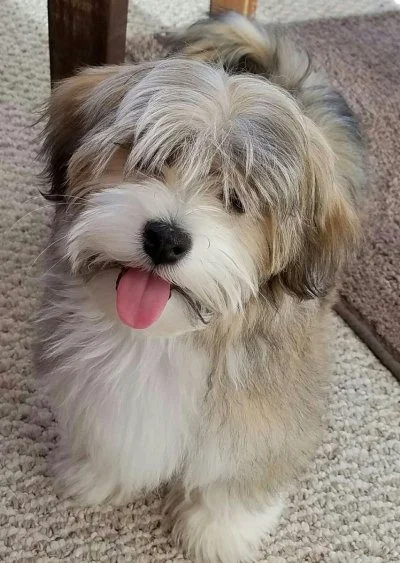 Sadie weighs 9 lbs. She is on the smaller side of the breed standard. Sadie is an Irish pied white and apricot with charcoal agouti colored Havanese. She has the best coat of hair. It is thick and flowing and very easy to maintain. Sadie’s puppies are typically very uniquely marked with beautiful colors. Sadie is a great companion and friend!