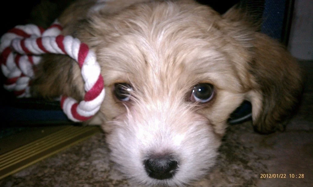 Reese is a sweet little Havanese! She is white and red sable Irish pied! Her sable guard hair colors have faded accept in her ears… Leaving her a white and apricot color as an adult! She weighs 10 lbs. When Reese was a puppy she was a tad bit sassy; the sweet kind of sassy. She did everything to try to win our attention… And win it she did as well as our affection.