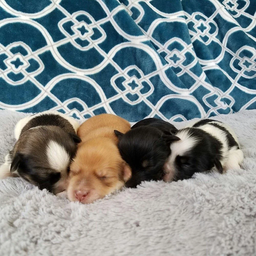 Not only is Winnie a cheerful companion she is also an attentive and tireless mom. Making sure her puppies are well fed, clean, and comforted through every step of their early journey in the world.